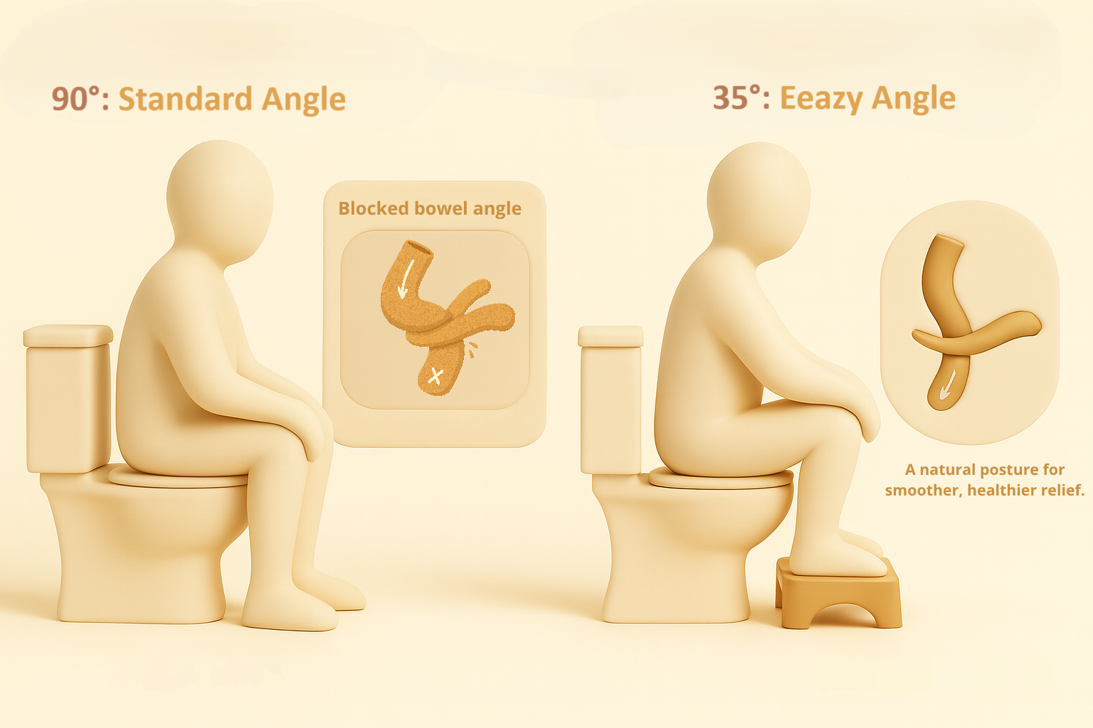 Simply place the EeazySqueezy™ under your toilet, rest your feet on the stool, and lean forward slightly. This puts your body into the natural 35° squat position — helping your muscles relax and making bowel movements smoother and easier.